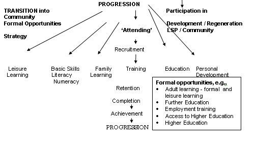 - The progression map confirms the need for workers, agencies and providers to work together, in order to enable learners to make learning choices and progress successfully.