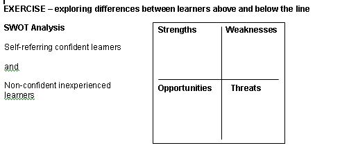 Working above the line means recruiting learners in ways within communities, which reach and work effectively with traditional adult learners.
