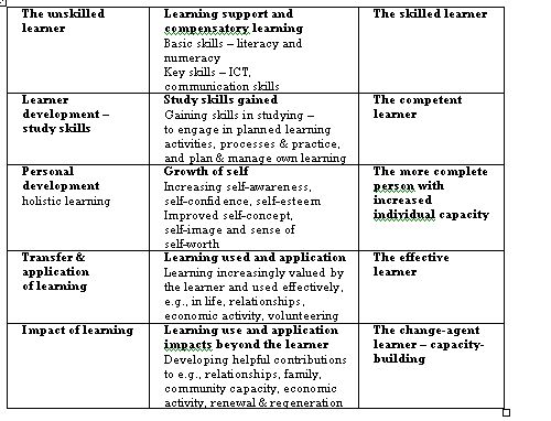 This resource models learning journeys taken by adult learners, building their individual capacity as learners and as individuals. Frameworks are provided for workers to explore: their role, how learning success can be assessed and the barriers and constraints that may need to be overcome.